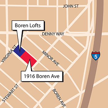 Less than two months after selling the new Boren Lofts for $119 million, Trammell Crow is eying Onelin Capital's development site next door, at 1916 Boren Ave. in the Denny Triangle. CollinsWoerman just filed a plan on its behalf for a 10-story office building.