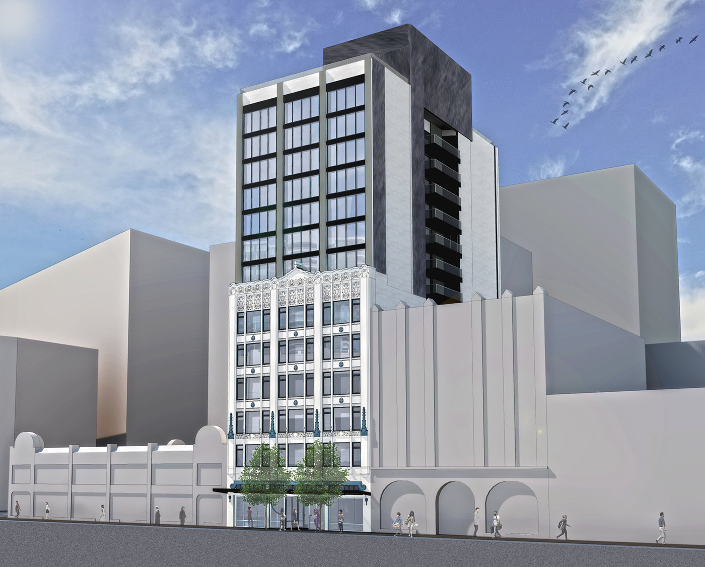 The basic concept is a nine-story addition to the original six-story building. It could yield 50 apartments over 112 hotel rooms. The new project is listed with a nominal value of $19 million. (The old total project cost had been estimated at $43 million.)