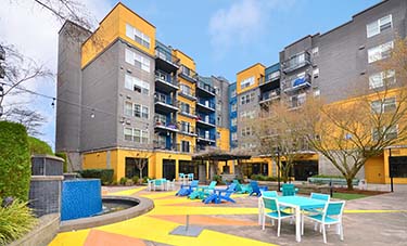 The complex spans nearly 2 acres, and extends east to 33rd Avenue Northeast, which provides some of the parking access. There are 288 structured and underground stalls.