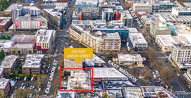 The land hasn't sold yet, but a prior Capitol Hill apartment plan at 1314 E. Union St. now seems likely to expand onto a neighboring parcel. Euclid Development and Board & Vellum had proposed in May a seven-story, 80-unit building.