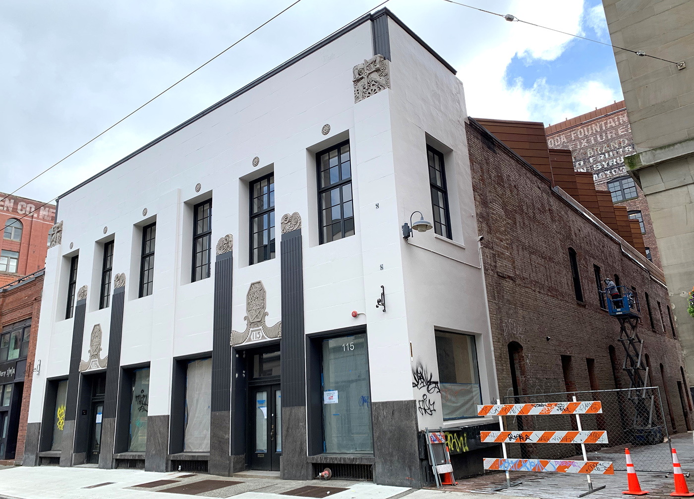 Construction is nearly done with the renovation and addition to what was once called the Fisher Building, in Pioneer Square. The two-story Art Deco-style structure at 115 - 119 S. Jackson St. will have 26 small apartments on its second floor and new penthouse addition. As part of the larger three-building RailSpur project, under developer Urban Villages and owner Manchester Capital Management, those units will instead open as hotel rooms.