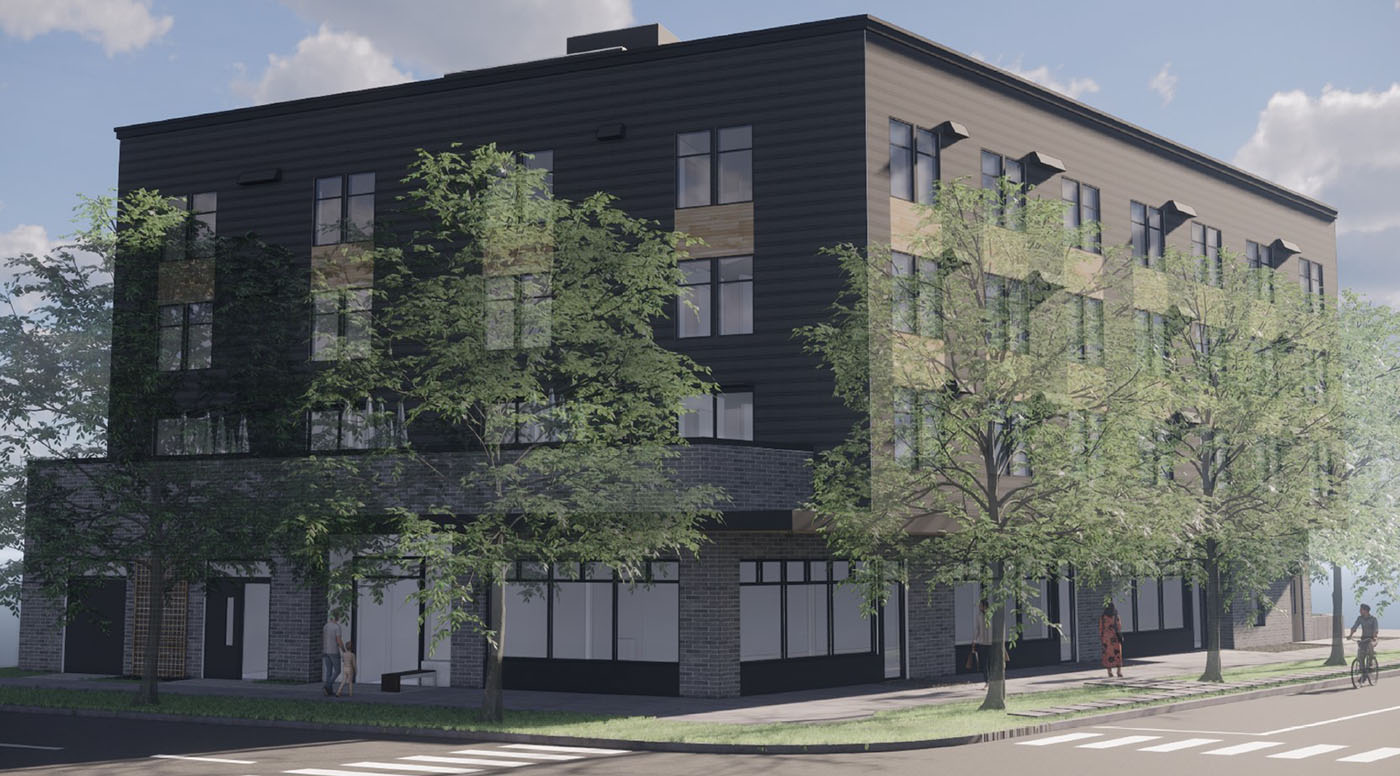Demolition, shoring and excavation lasted into the winter at 4612 Stone Way N. Now the concrete basement level is being completed, and a four-story, 55-unit apartment project is nearly at grade. Alchemy Real Estate and developer Michael Pollard are behind the effort, with Cone Architecture having created the design for Clark Construction to build.