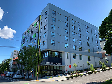 Plymouth Housing began planning some four years back to redevelop St. Francis House (now demolished), with a new permanent supportive housing project. Yesterday, with a new address and name, that officialy opened as Bertha Pitts Campbell Place, at 171 12th Ave., on the corner of East Spruce Street.