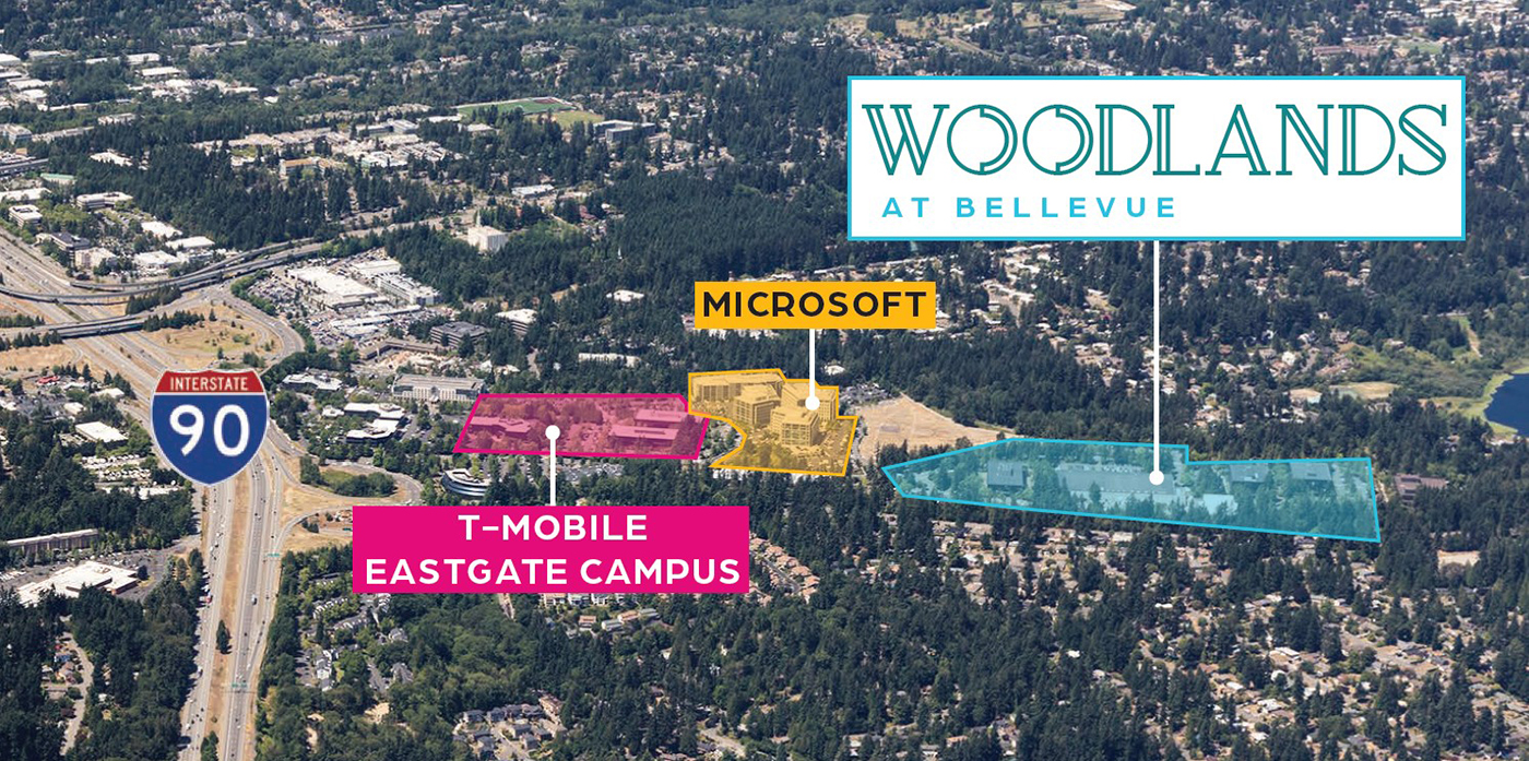 Renovation plans are slowly taking shape for Boeing's former Eastgate campus, which it sold to Westbrook Partners last summer for $139 million. The six-building complex is now Woodlands at Bellevue, with multiple addresses spanning 2525 -2810 160th Ave. S.E. Those 45 acres are a little north of Interstate 90, next to Bellevue Airfield Park.