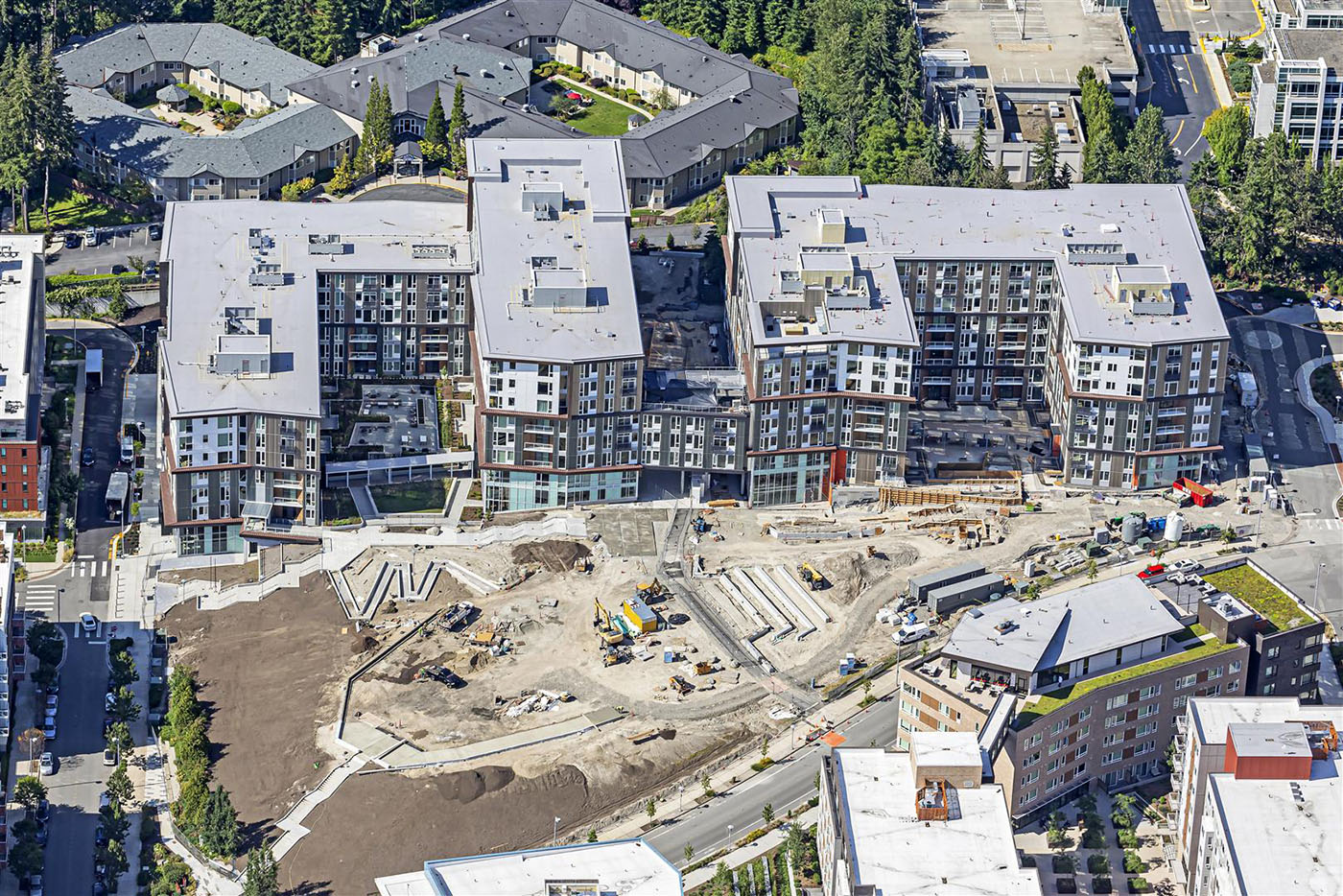 With the nearby Overlake Village Station expected to open next year, a decade after Capstone Partners and Lionstone Investments purchased the former Group Health campus in Redmond, the 28-acre Esterra Park is in its final months of development.