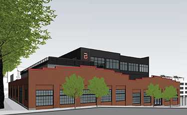 The century-old garage will be preserved but not untouched. Its windows and entries have changed over the years. On the north facade, two new glass entries will face CPA. On the east facade, facing a very narrow pedestrian walkway, bricked-over vehicle bays will become windows.