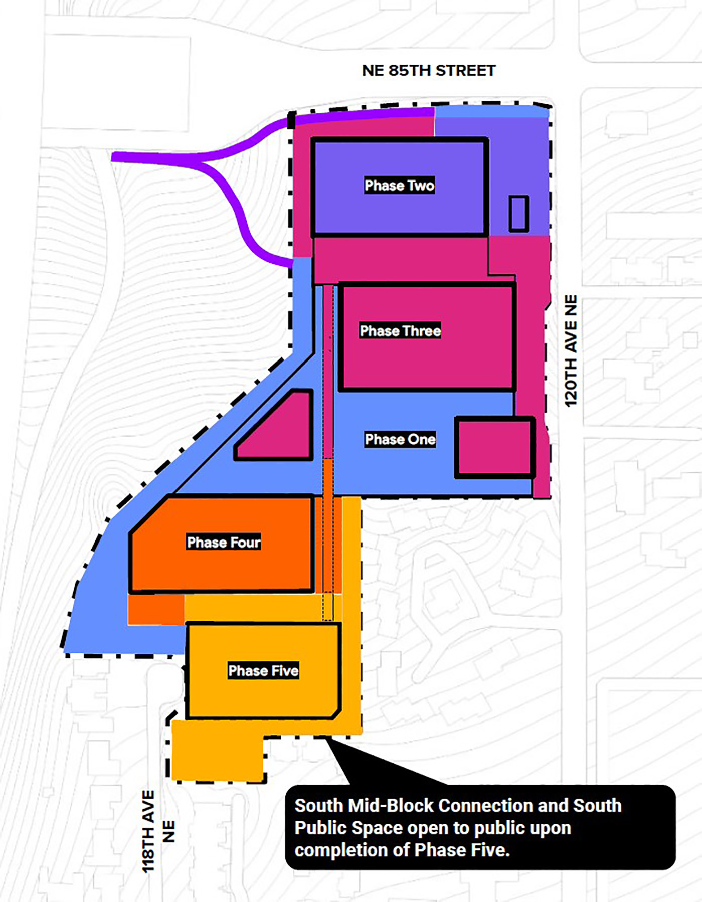 Mid-2022 is but a goal for a municipal process that is slow, but still faster than Seattle's. Assuming the agreement is inked and the land sells, phasing would proceed in a hopscotch fashion: middle, north, then south. Each of the five buildings would require individual design review.