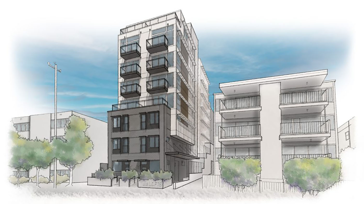 A six-unit apartment building from the 1950s was razed last year at 318 Bellevue Ave. E. Redevelopment plans have been brewing since 2017, but the architect, numbers and environmental bona fides have changed since then. And Kidder Mathews is now offering what it calls 318 Lofts, on behalf of the longtime landowner.