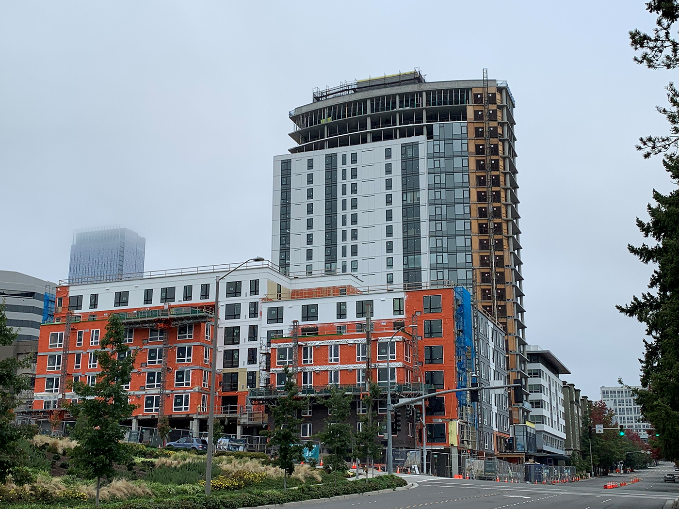 The Bellevue Gateway project from Alliance Residential has two components: the upscale 22-story, 155-unit senior living community now dubbed The Residences at Holden of Bellevue; and the 190-unit midrise apartments now branded as Broadstone Savoie.
