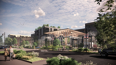 Planned by GGLO, the large phased project is to initially include some 220 apartments over a new Molbak's store at or near 13625 N.E. 175th St., east of the current store. That's Phase I, designed by GGLO and Graham Baba Architects, with about 130,000 square feet slated for Molbak's (including greenhouses outside the main building). Sierra is attached as the builder for the five-story, over 550,000-square-foot project — with substantial mass timber elements.