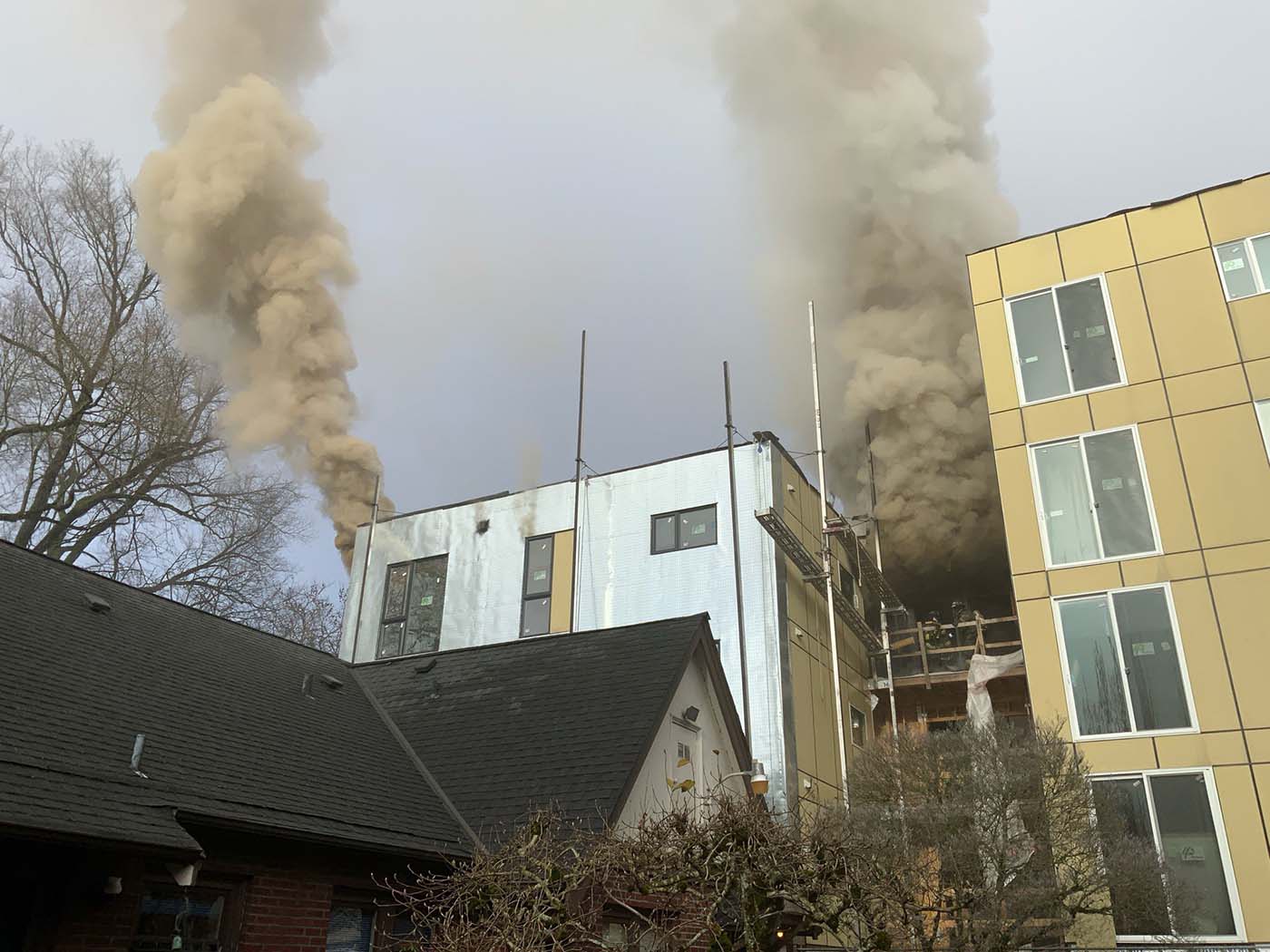 On Saturday of this past weekend, Seattle Fire Department extinguished a blaze at a Capitol Hill construction site. There, at 614 13th Ave. E., owner and builder The Dover LLC was nearing completion on a five-story, 20-unit apartment building.