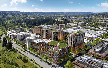 As the DJC first reported last month, developer Hines and architect GGLO are working with the retail owner at Redmond Town Center, Fairbourne Properties, on a major redevelopment plan. The first city design review will come this week on Thursday, and there are a few new details for the project.