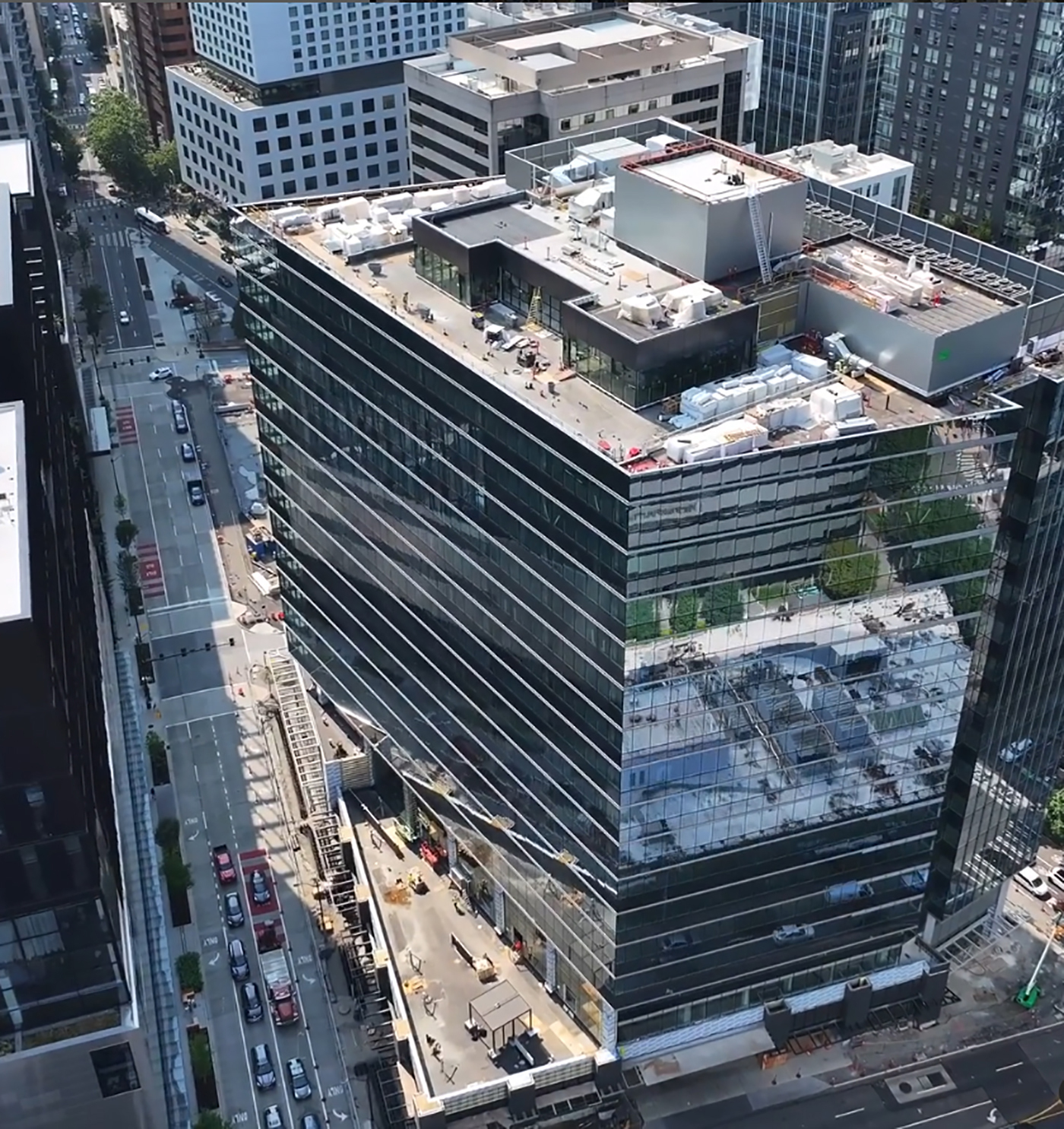 The temporary certificate of occupancy came in December for Washington 1000, meaning that the brand-new office tower from Hudson Pacific Properties is on track for an official spring opening. Work began at 1000 Olive Way, above the Summit convention center loading docks, in the spring of 2022.