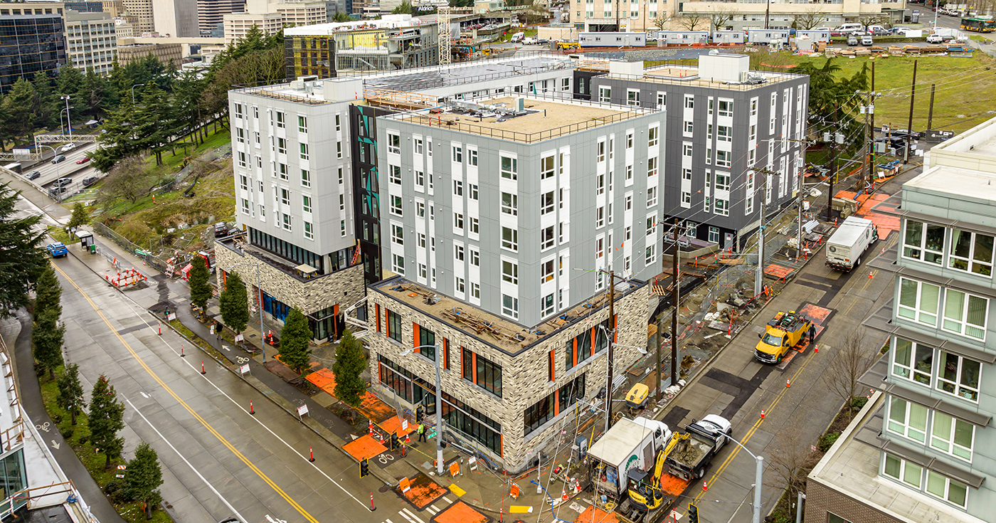 Sawara, an affordable housing apartment building, is quickly taking shape at Yesler Terrace and is anticipated to be complete in May.