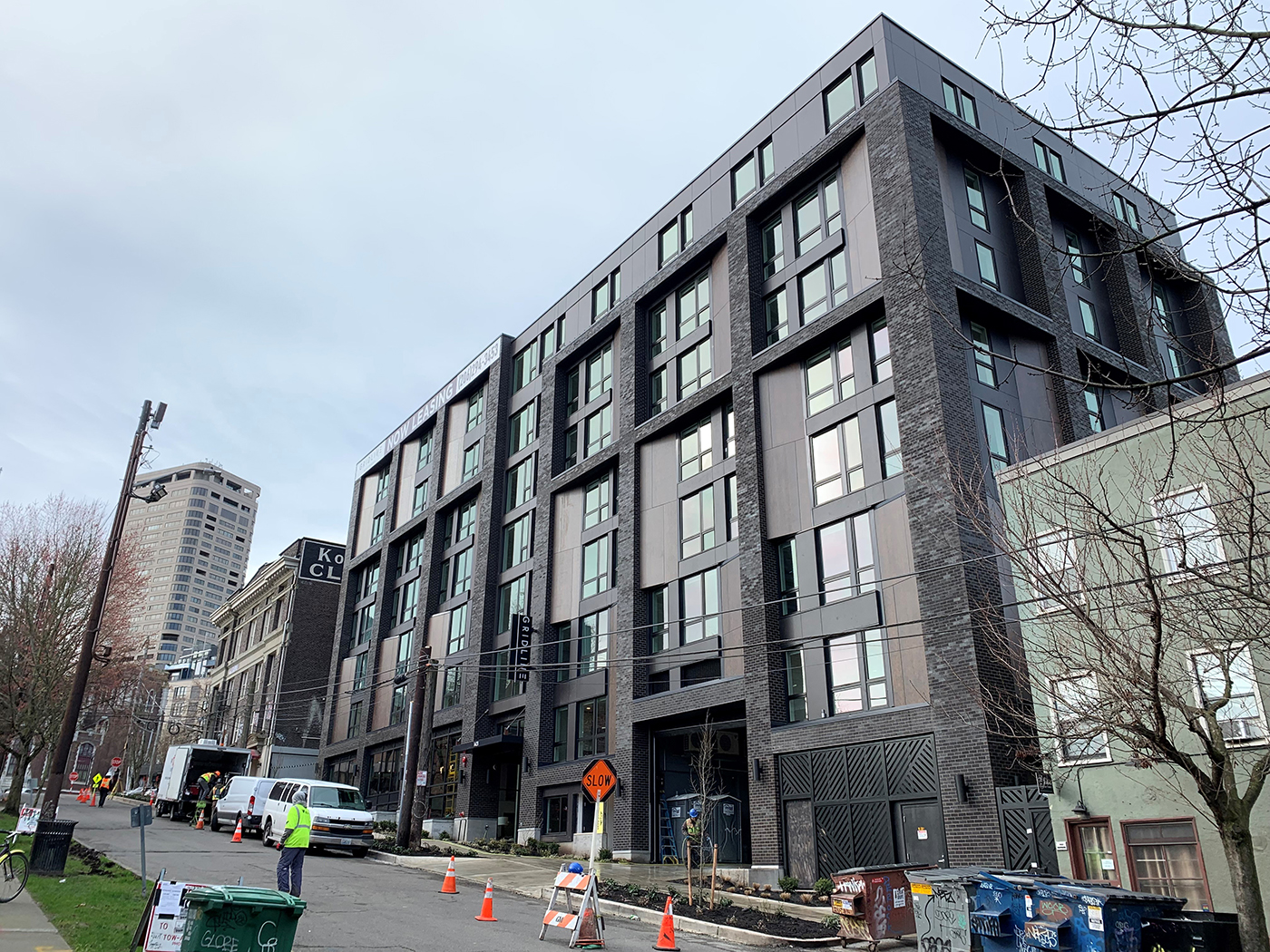 SRM Development's Gridline, with two apartment buildings on the Pike-Pine corridor, has been opening in phases. The smaller 49-unit west building opened in October. Now the larger 129-unit north building, at 1421 Harvard Ave., has received its temporary certificate of occupancy from the city.