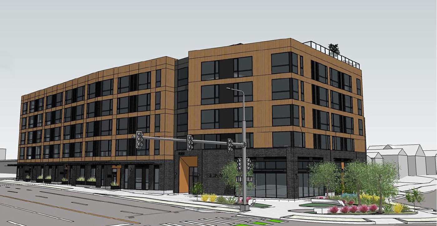 A demolition permit came last week for the vacant former Guitar Store corner, a little west of Green Lake at 8300 Aurora Ave. N. Developer Bode secured its master use permit for a five-story, 117-unit apartment proposal almost a year ago. Recent loans, one from Amazon's Housing Equity Fund, indicate a nearing start for the unnamed project.