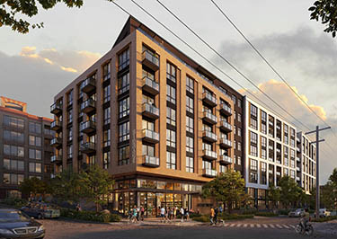 One last design review will come next month for Continental Properties' 164-unit apartment plan at 1661 E. Olive Way on Capitol Hill. Architect MG2 is designing the seven- to eight-story building (on a sloping site), with Compass Construction newly attached as the builder.