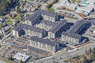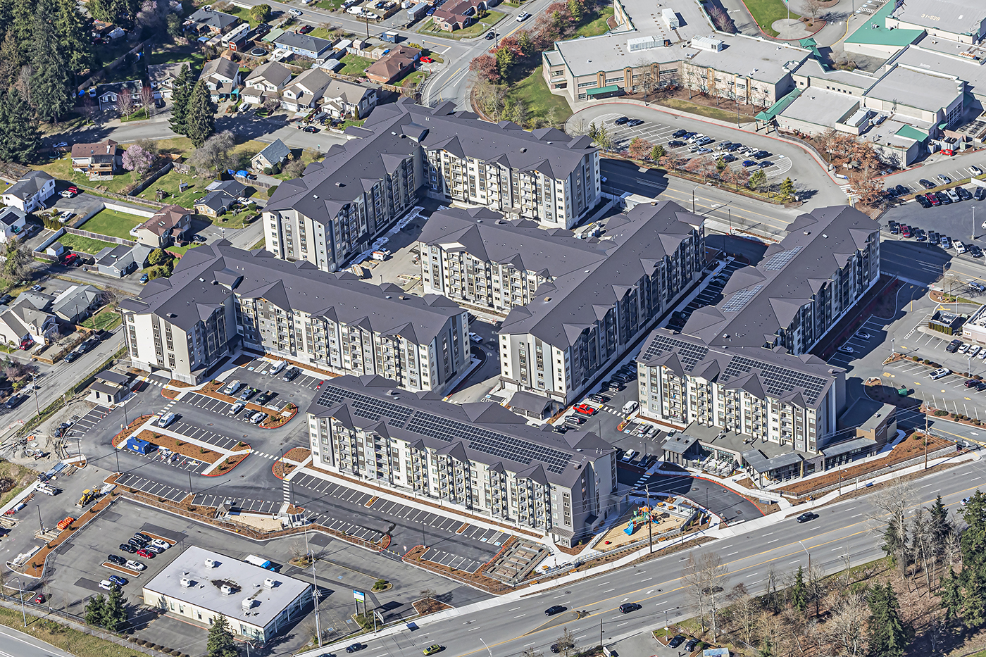 Four Corners was the name of the old shopping center DevCo purchased in 2020, and Four Corners is now the name of its newly opened apartment project at 8102 Evergreen Way.