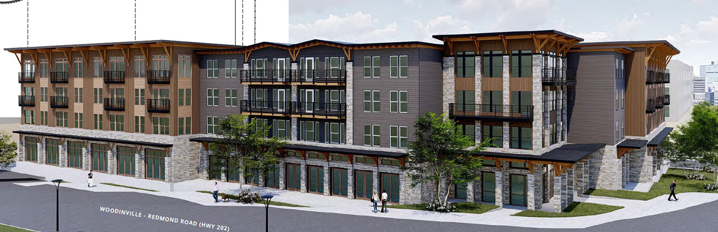 The crane count at Harvest, the mixed-use and wine-themed development in Woodinville, has now risen from three to four. For Trammell Crow Residential's Alexan Woodinville apartments, at 14801 N.E. 144th St., that crane went up in recent months. Groundwork seems to have begun last fall.