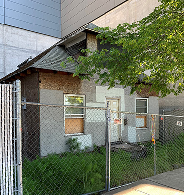 Nine years back, there was fleeting talk of moving the house to Orcas Island. Now fenced and in need of some TLC, it looks to have been empty since 2008. The city has it listed for vacant building monitoring.