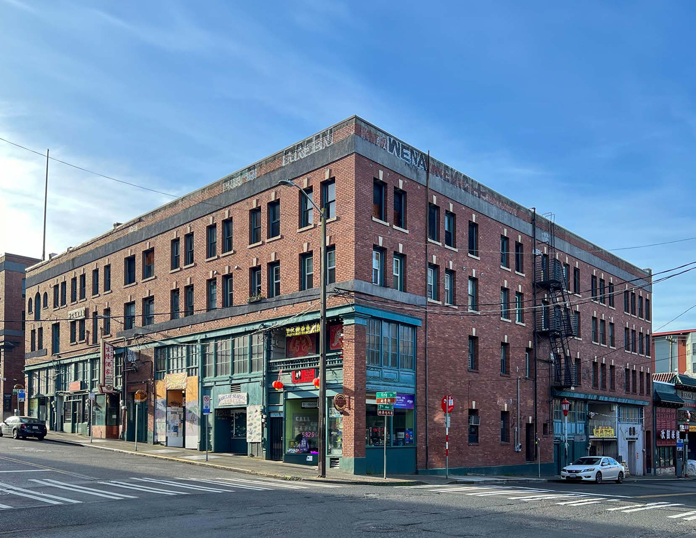Facing South King Street in the International District, there are two Kong Yick buildings — east and west — separated by Canton Alley. Both were developed in 1910 by their namesake company, which still exists today, via funding from individual Chinese immigrant investors.