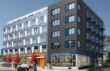 The groundbreaking ceremony came on Tuesday for Keystone, a 74-unit workforce housing project at 9201 Delridge Way S.W. in West Seattle. The builder, STS Construction Services, is partnering with developer Housing Diversity Corp. on the project. Atelier Drome designed the five-story, 74-unit building, which will rise on the corner of Southwest Barton Street.