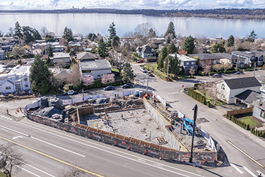 Up the slope from Kirkland's old downtown center, a vacant triangle at 1001 Market St. sold two years ago for all of $1.7 million. It has low-rise zoning, so townhouses then seemed the likely outcome. Instead, a two-story, steel-framed commercial building recently topped out on the 8,120-square-foot triangle. Ground work began earlier this year. The site is just south of the Dibble Engineers building. One old house was removed in 2007.