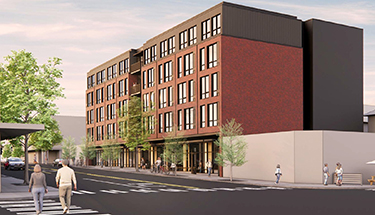 One final round of design review seems likely in coming months for the 80-unit apartment proposal to replace the former home of the old Guild 45th cinemas, which were demolished in recent years. (The two cinemas closed in 2017.) On a midblock site in Wallingford, Clark Barnes is designing the five-story building at 2115 N. 45th St.