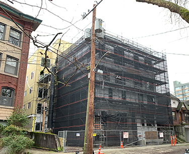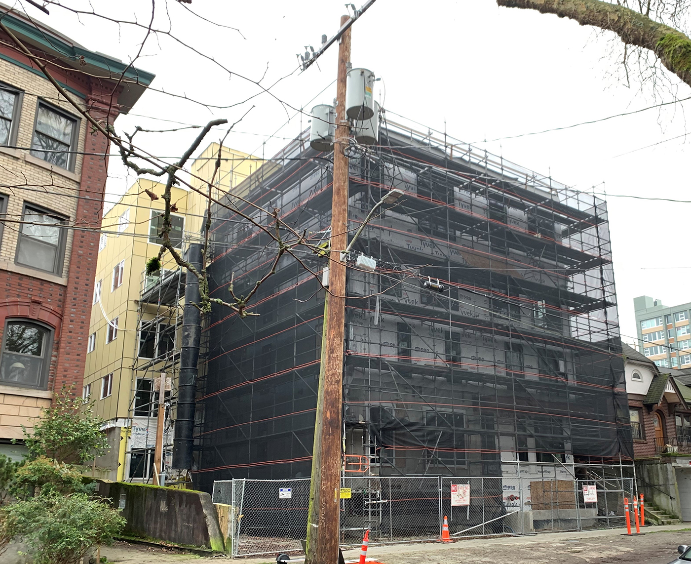 Twelve months after a fire at a Capitol Hill construction site, the substantially completed apartment project at 614 13th Ave. E. is for sale. The listing for the five-story, 20-unit Dover apartment building popped up this week. Orion Commercial Partners is the broker, with no stated asking price.