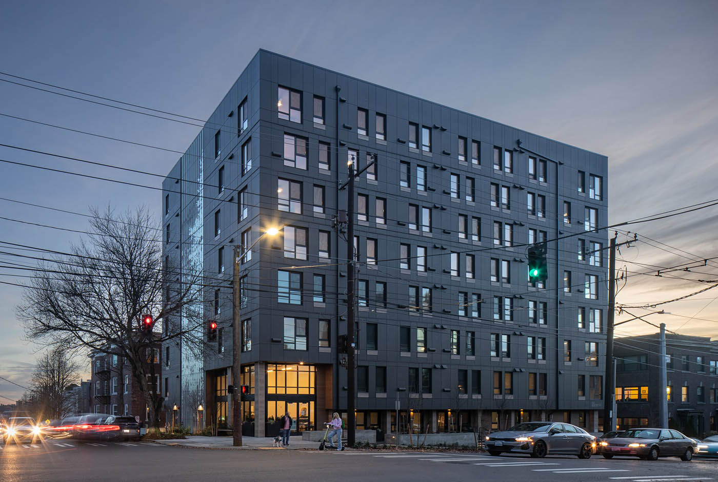 On Capitol Hill, Community Roots Housing opened the mostly mass-timber Heartwood apartments in the fall of 2023. The affordable housing specialist worked with architect atelierjones and builder Swinerton on the handsome eight-story, 126-unit project at 1323 E. Union St.