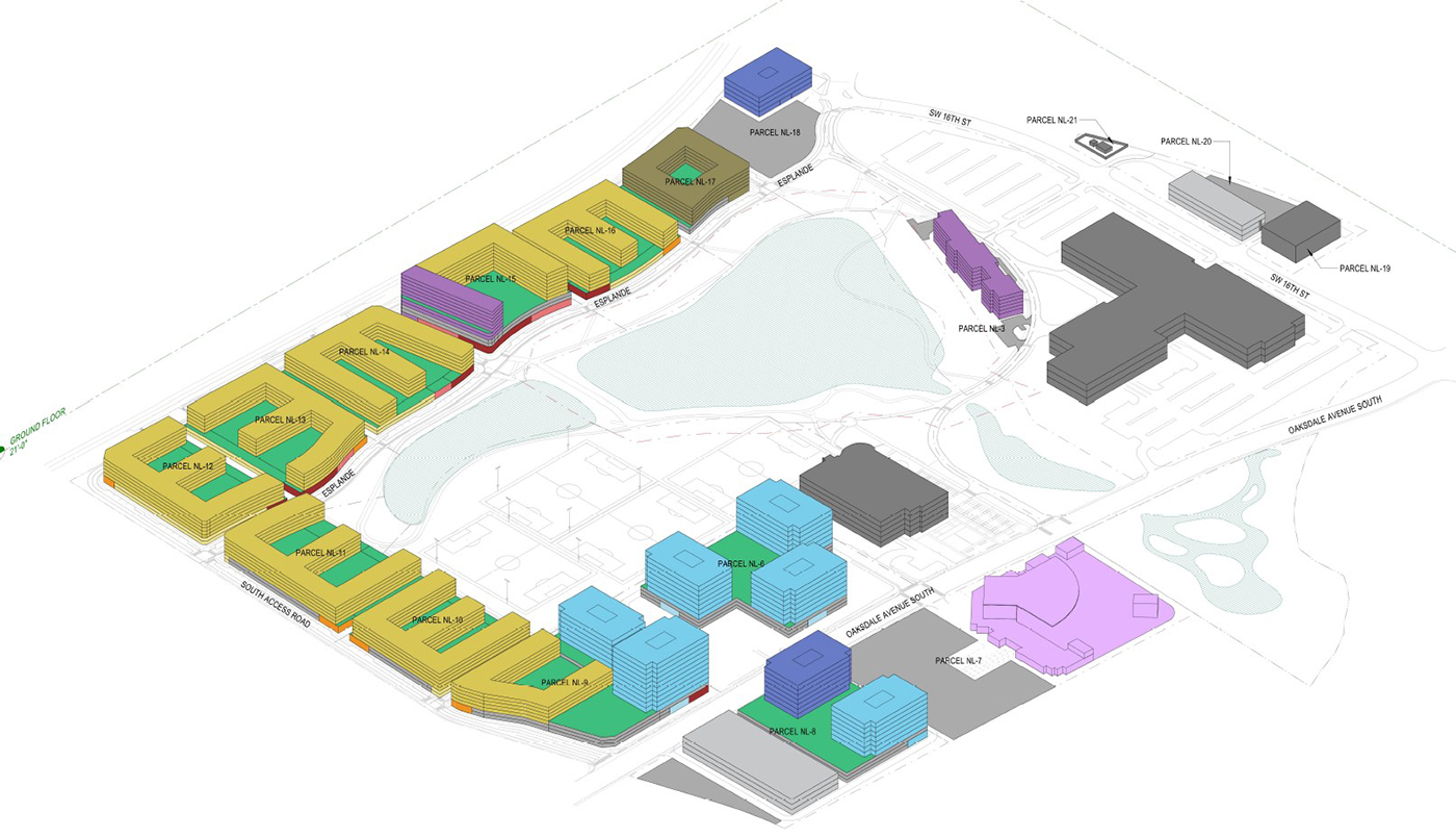 Unico mentioned residential use, a hotel and more offices back in 2022. Its master planning effort began in earnest the following year. Several new parcels have since been created for future development. The main project goes by 1901 Oakesdale Ave. S.W.; new addresses will emerge later.