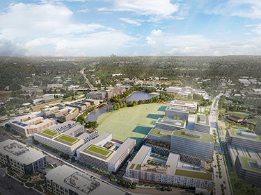 Thus, Phase I might start on the northwest corner (south of Interstate 405), with a hotel, medical office building and three apartment buildings. (An assisted-living building for seniors is also an option there.)
