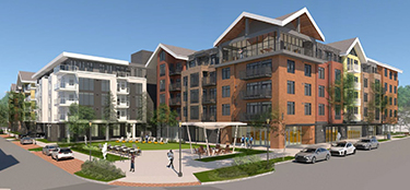 Weidner Apartment Homes has, over the past dozen years, developed about 1,000 apartments at its Woodin Creek Village. That mixed-use downtown Woodinville endeavor has been phased, using a few different architects, and it'll likely conclude with the north Phase VI. That's to replace an old three-building business park at 17311 135th Ave. N.E.