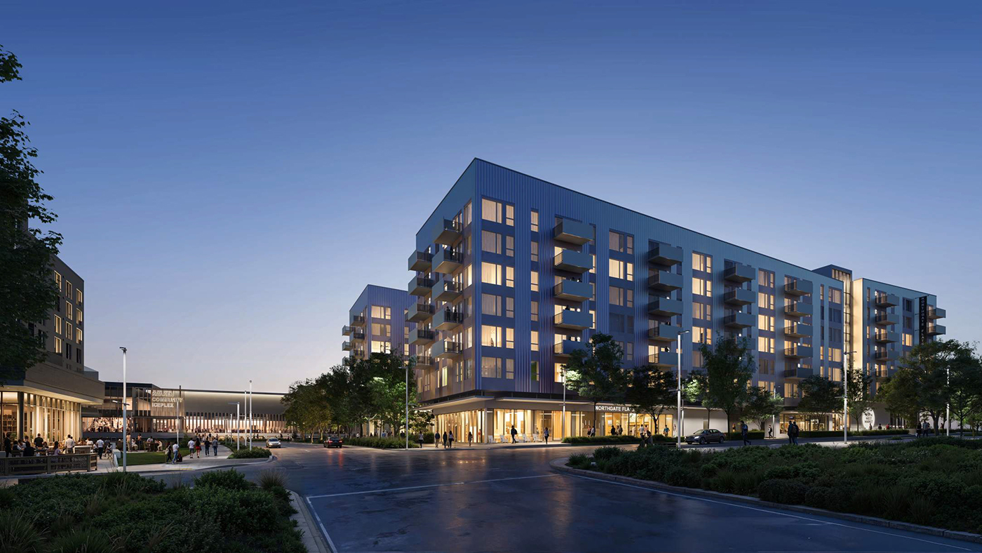 Simon Property Group broke ground last summer on its initial two apartment buildings at Northgate Station. Compass General Construction is now building that duo, with 420 units, parking and retail, on the east side of the 55-acre mall property (Fifth Avenue Northeast). Those are dubbed M2 and M3, and should open in phases during 2026-2027.