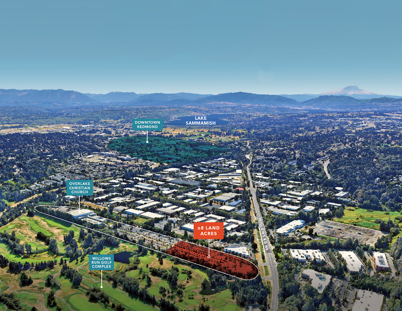 About two years ago, Kidder Mathews began offering the west parking lots at Overlake Christian Church to prospective developers — not the Redmond church buildings. Those are to remain on the east end of the long, skinny property. Last year, as the DJC first reported, an 800-unit apartment plan surfaced at 9900 Willows Road N.E., but it soon fizzled.