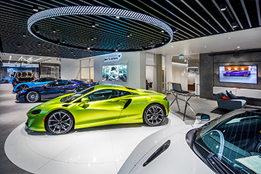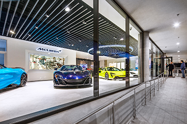 It's now home to high-end showrooms for Lamborghini, Bentley and McLaren.