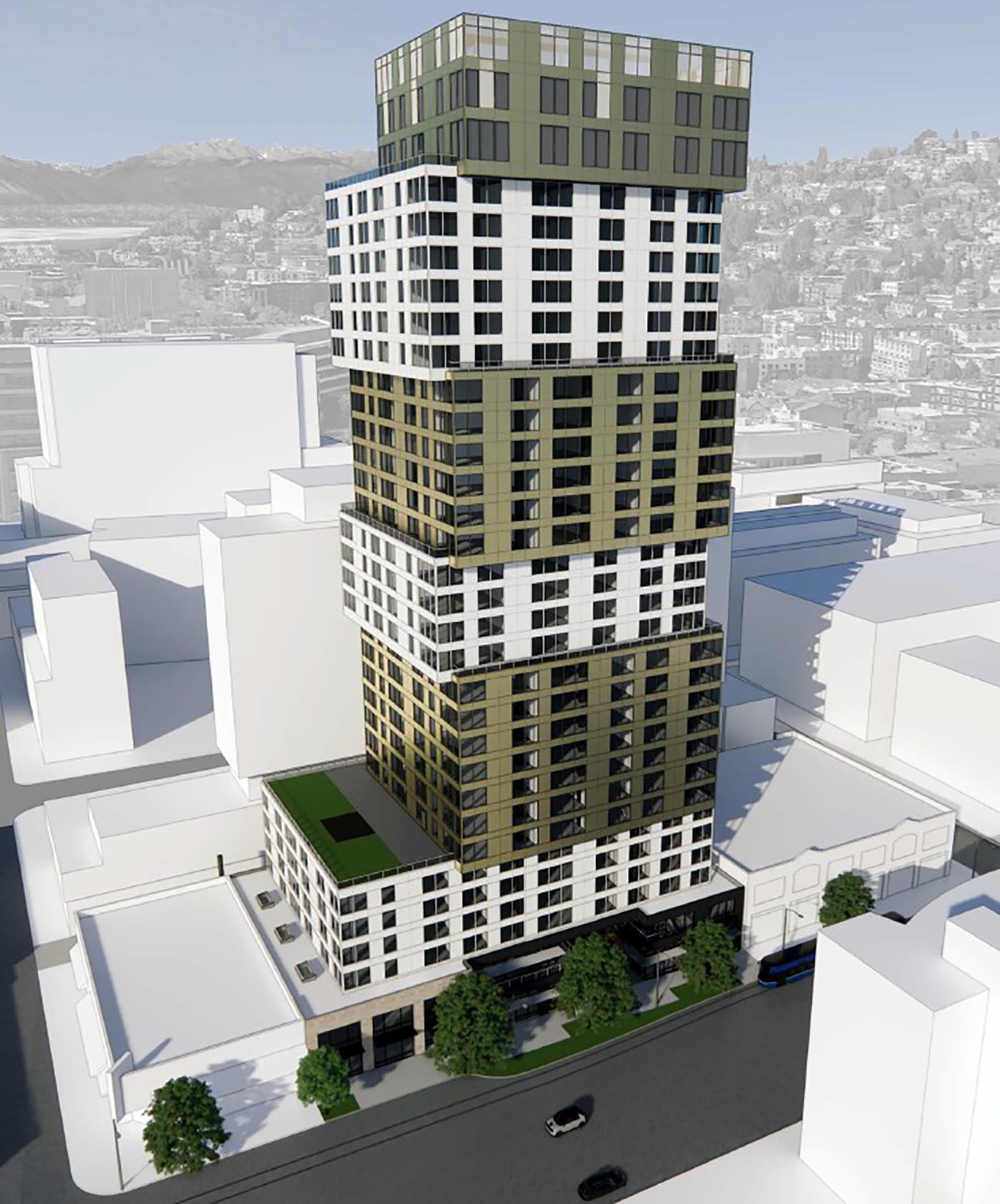 Since the fall of 2022, Heartland has been advising Union Church and its South Lake Union neighbor on a possible sale and redevelopment plan. To aid in the effort, architect Weber Thompson has an early high-rise apartment proposal at 415 Westlake Ave. N. That might yield 342 units in a 29-story tower.