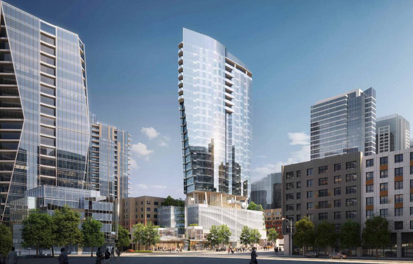 The tower now stands at 24 stories, with 141 units, about 5,000 square feet of retail/commercial space and 119 mostly structured parking stalls. Total project size? Somewhere around 230,000 square feet.