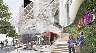 Including the rooftop mechanical level, 205 Tower would reach about 306 feet in height. Facing south to Northeast Second Street would be an oval-shaped public plaza with benches and outdoor seating for a possible cafe.