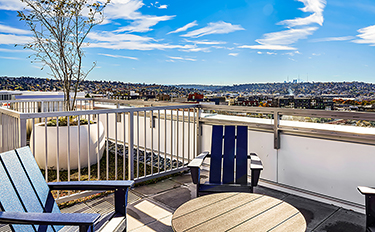 The nearly 75,000-square-foot project has 21 structured parking stalls and 50 bike stalls. There's also a roof deck with nice views. Other amenities include a package locker, indoor play area for kids, laundry rooms on every floor, on-site services from Family Works and a coffee bar.