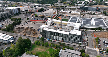 On the east side of Simon Property Group's Northgate Station, work began in the summer of 2024 on the initial pair of apartment buildings. (Two more will follow.) For now, that duo goes by 10523 Fifth Ave. N.E.