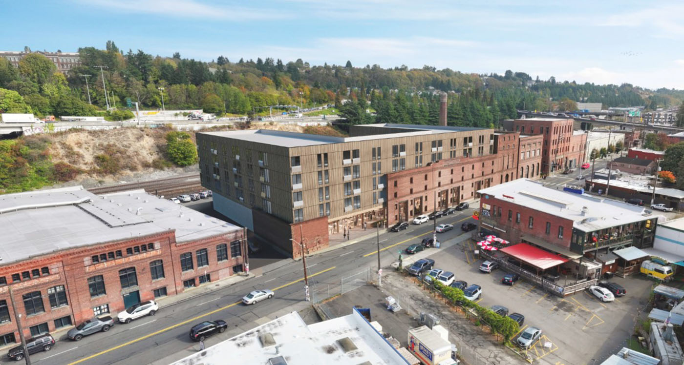 The number of units isn't yet enumerated. The existing red-brick Malt House ranges from three to four stories. Such creaky old industrial structures are notoriously hard to measure or repurpose. GGLO rates the current structure at 72,466 square feet, and proposes demolishing about 52,209 square feet of that — all to the east, facing the freeway, not Airport Way.