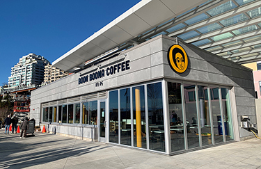 At Overlook Walk's handsome little retail pavilion , Boon Boona Coffee is now up and running. The signage and furniture are in place, and the hours are posted on the front doors. (The website doesn't yet show the new location, its fifth.)