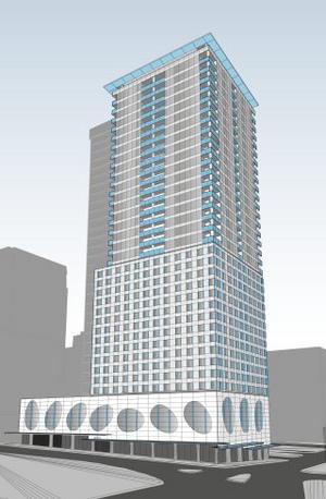 One board member, James Falconer, vice president of the Vance Corp., recused himself because Vance owns property near Eighth and Olive. The other board members praised the elegant and whimsical nature of the design, but they asked for another look and a more realistic rendering.