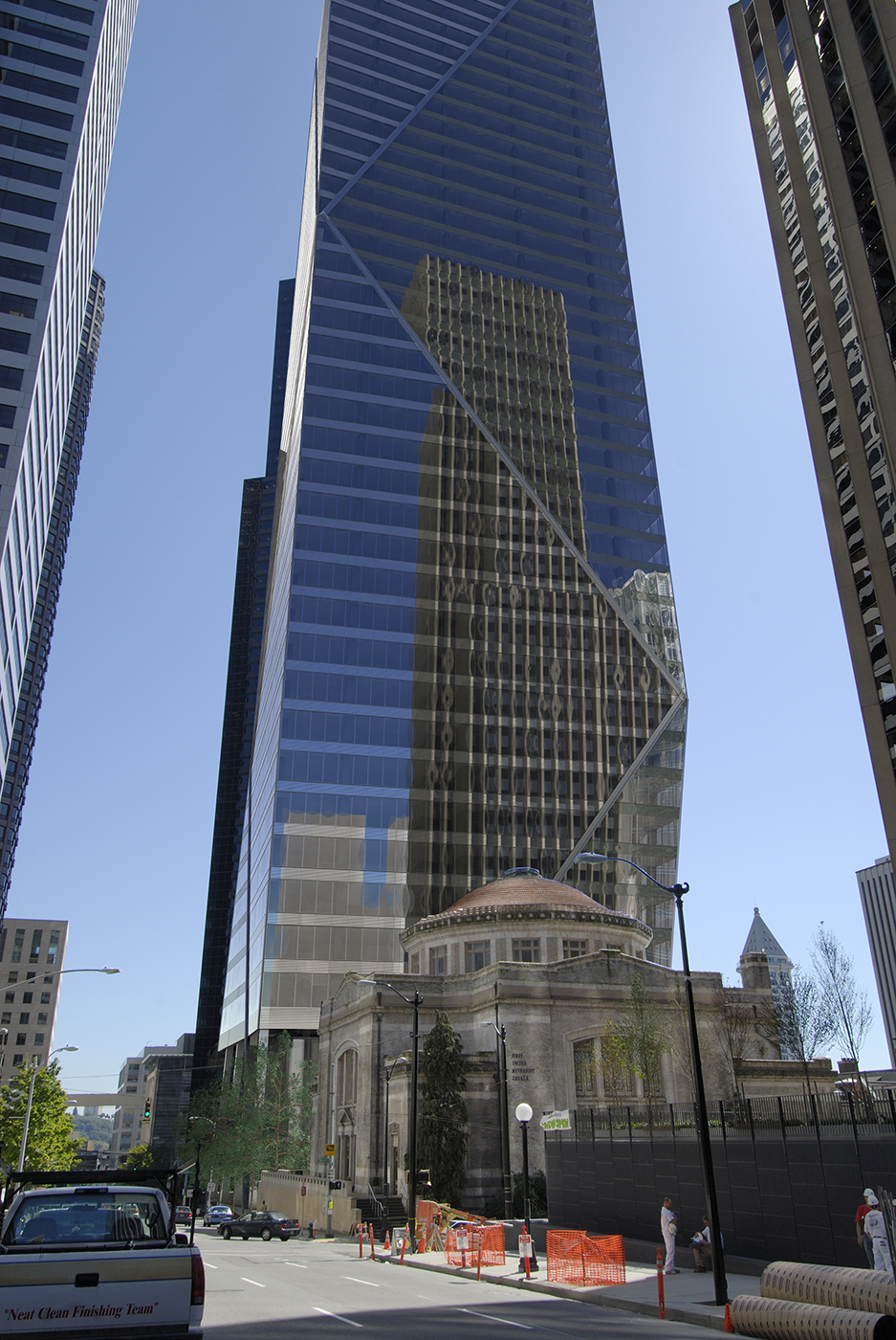 Another risk came from nearby Columbia Center. Daniels and his team anticipated that building's tiebacks might infringe on The Mark's site and planned to stay about four feet away from where they thought the tiebacks were. They still hit every one of the tiebacks, Daniels said, which cost time and money.