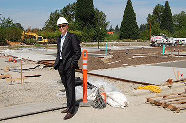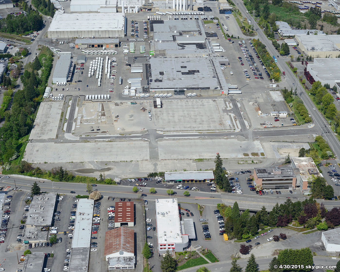 Wright Runstad's Greg Johnson gave the Buzz a tour last week. Much of the concrete slab from the old Safeway distribution center remains, but new roads are in place and construction has started on a central park.