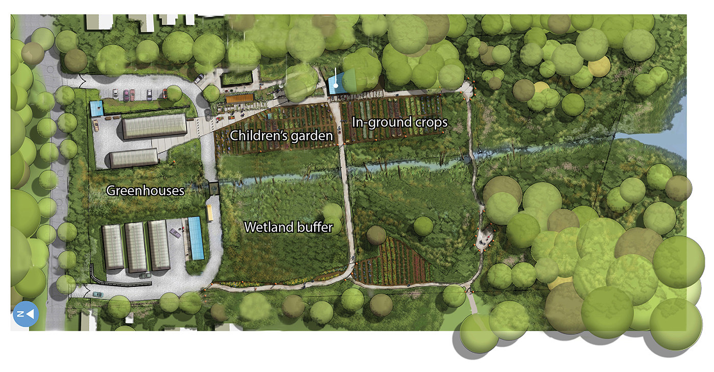 Four greenhouses will be added on the seven-acre site, as well as a farm stand, children's garden, rain gardens and hand-crafted wetland markers. There will also be a commercial kitchen, office space, a classroom, and a circle drive for school buses, delivery vehicles and physically disabled visitors.