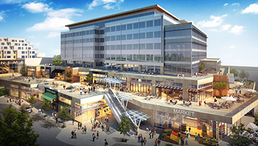 The first phase is two office buildings with 383,000 square feet, 205 housing units and three small retail buildings. Construction started in February.