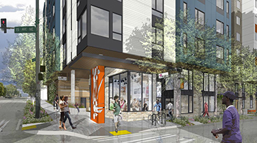 Using an ownership entity called University District Apartments 9% LP, Bellwether has filed plans with the city for a seven-story apartment building to be called Arbora Court. It will have 133 units and 1,400 square feet of commercial space above 113 parking spaces. Sixty of the spaces will be reserved for UCC.