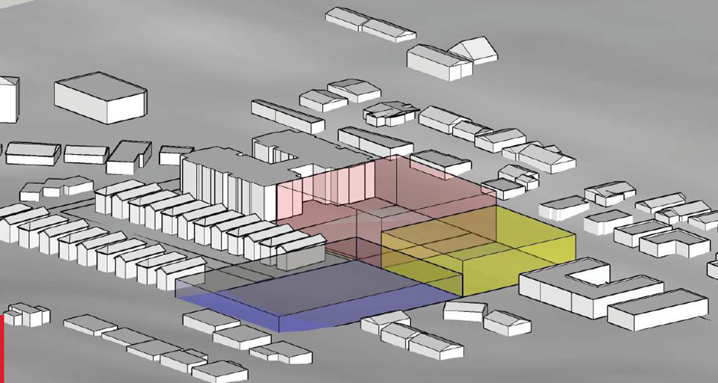 However, the preferred design scheme shows the building would step down in height from Rainier to the east, which borders single-family housing.